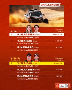 COCHES (Challenger): Klaassen y Sanz, al frente de la Etapa 3 en Challenger. Cavigliasso es quinto