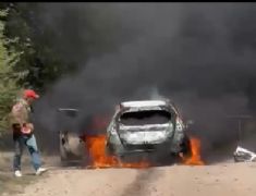 Vorz incendio consumi un auto de rally y suspendieron la competencia en icao. Frias/Echevarra ganaron