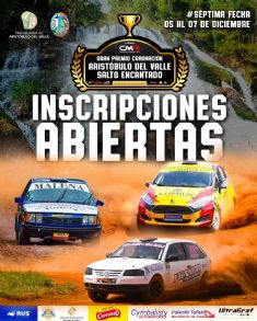 Se habilitaron las inscripciones y se dio a conocer el diagrama de carrera para la 7° y última fecha que se disputará el 5, 6 y 7 de diciembre por los caminos vecinales de Aristóbulo del Valle y Salto Encantado. La Asociación Misionera de Pilotos y Navegantes de Rally (AMPyNaR) trabaja en los detalles finales para el Gran Premio Coronación del Misionero de Rally que se disputará el 5, 6 y 7 de diciembre por los caminos vecinales de Aristóbulo del Valle y Salto Encantado.