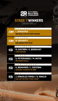 No es que sea excepcional, es sencillamente nico! La sptima etapa del Dakar 2026 ha sido testigo de la victoria de dos hermanos en dos categoras diferentes. A ltima hora de la maana, Luciano Benavides ha cruzado la lnea de meta con el mejor tiempo en la categora de dos ruedas motrices. Y, unas horas ms tarde, su hermano mayor Kevin, doble ganador en motos en 2021 y 2023, ha confirmado que ha acertado al pasarse a la categora Challenger, como avala su primer triunfo al imponerse a su compatriota Nicols Cavigliasso por 5'40''. El timing no podra haber sido mejor para estos dos hermanos, que ya conocieron la gloria familiar cuando pilotaban KTM. Recordemos que en la 13 etapa de 2023, Luciano y Kevin ocupaban los dos primeros puestos separados por solo 3''. Y, al ao siguiente, en la octava etapa, fue Kevin quien llev los colores de la familia a lo ms alto, con 31'' de ventaja. El do tambin puede felicitarse por haber superado a los hermanos Al Attiyah en la sptima etapa de 2021. Khalifah participaba en su primer Dakar y gan en SSV, mientras que su hermano Nasser, alias el coleccionista de etapas, qued tercero.
