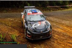 Los compañeros de Bates en el GR Yaris, Lewis Bates y Anthony McLoughlin, se sitúan terceros, por delante de los líderes iniciales, Scott Pedder y Glenn Macneall (Skoda Fabia RS Rally 2).