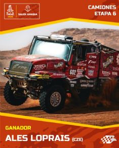 Ale Loprais ha aguantado el ritmo hasta el final. El checo ha dominado la prueba a la perfeccin para ganar la especial y conseguir su 20 victoria de etapa en el Dakar. Su ventaja sobre Vaidotas ala ha sido de 158. Mitchel van den Brink pretenda hacerse con la segunda posicin en el esprint final, pero una penalizacin lo acaba situando en el tercer escaln del podio de la etapa.