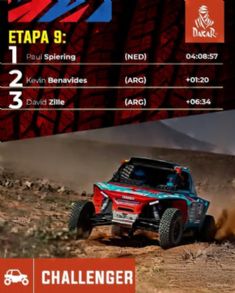 Tras la finalizacin de la novena etapa del Challenger, surgi del polvo del desierto una certeza y una duda. La certeza es que Pau Navarro dio un paso de gigante en la lucha por la clasificacin general, aprovechando al mximo la mala suerte de Cavigliasso y asentndose en cabeza con un margen que le permite, por primera vez en varios das, gestionar la carrera en lugar de limitarse a reaccionar. Seaidan est a 41 min 41 s, mientras que Lucas Del Rio / Bruno Jacomy (Brp Can-Am Maverick Xrs) estn a 57 min 34 s. Zille ya est a ms de una hora y seis minutos, con Klaasen cerrando el top 5. Pedro Gonalves est en sptima posicin, mientras que Carneiro cierra el top 10 de la general.