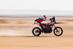 Con la moto elctrica china, el piloto cordobs se impuso en la etapa maratn y con ello se mantiene en el podio de la categora que rene a vehculos con energas renovables.