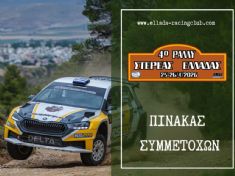 El IV Rally de Grecia Central, que se celebrará los días 25 y 26 de abril, ha reunido la impresionante cifra de 73 participantes, un récord en los últimos años para un rally de tierra. Esta prueba, que constituye la segunda ronda del Campeonato Panhelénico de Rallyes de Tierra, también puntúa, un año más, para el Campeonato Panhelénico de Rallyes de Coches Históricos.